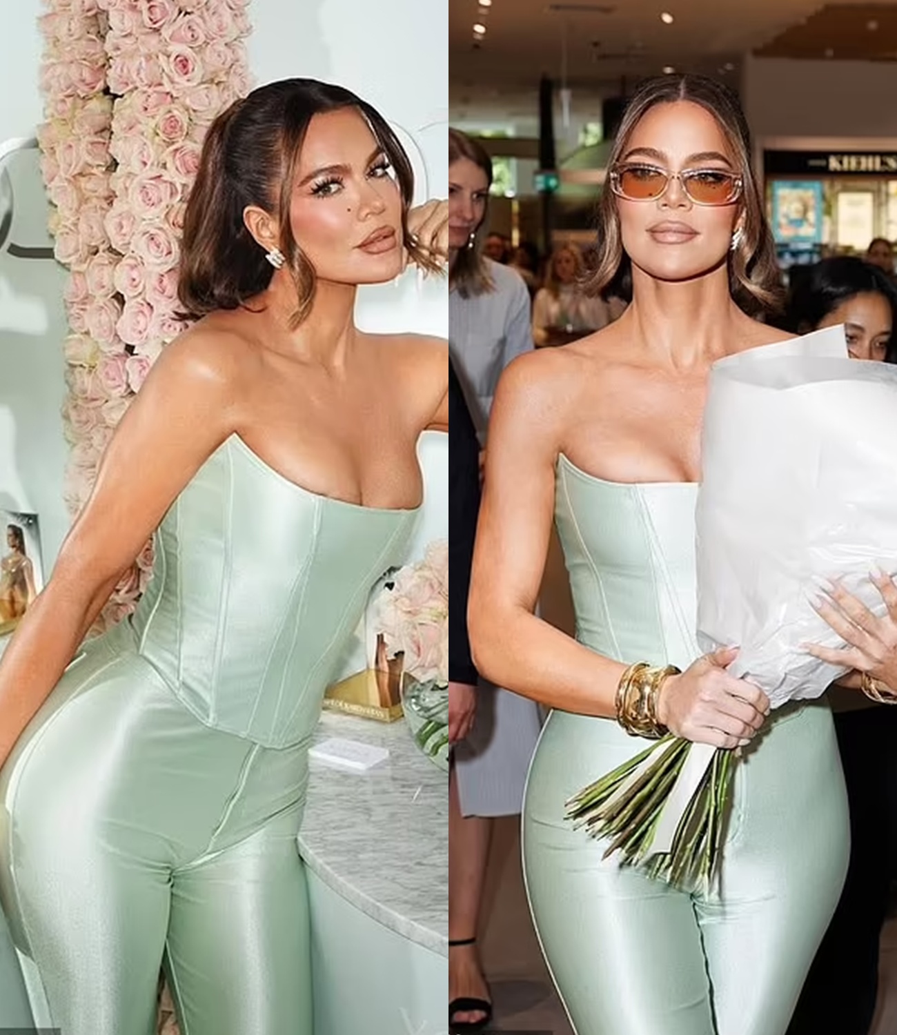 At a brand event in DĂŒsseldorf, Germany, 40‑year‑old KhloĂ© Kardashian wowed fans in a striking mint‑green ensemble by Rezek Studios.