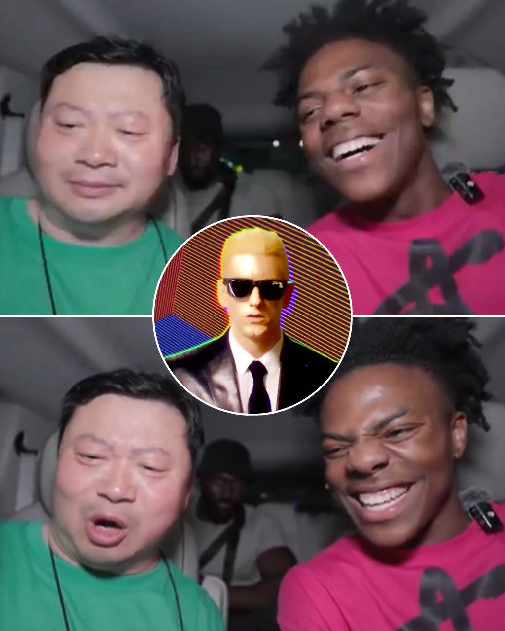 What followed was pure gold: a completely off-beat, wildly scrambled performance that sounded like Eminem possessed by a confused GPS system. Phones in hand, lyrics scrolling faster than the uncle’s comprehension, the moment descended into vocal chaos — with IShowSpeed barely keeping himself from exploding in laughter next to him.