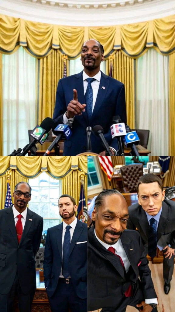 In the most legendary crossover of music and politics, a new viral AI-generated image reimagines Snoop Dogg as the President of the United States, with none other than Eminem by his side as the Vice President. And let’s just say — the rap game just took over the White House.
