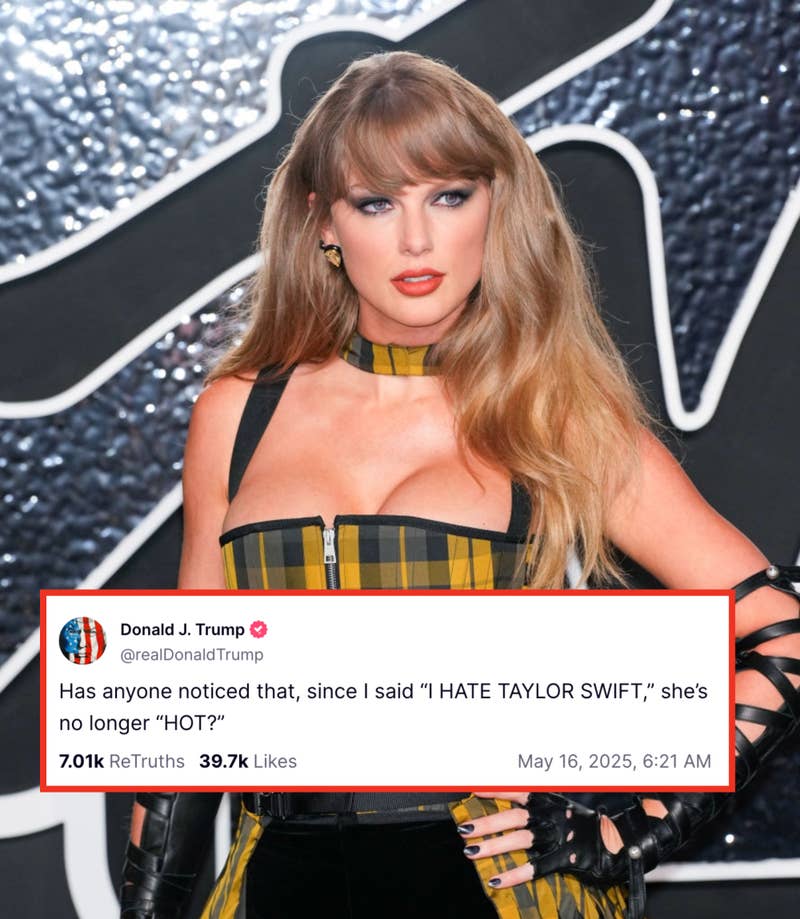 5. Just this May, Trump posted on Truth Social: “Has anyone noticed that, since I said ‘I HATE TAYLOR SWIFT,’ she’s no longer ‘HOT?’”